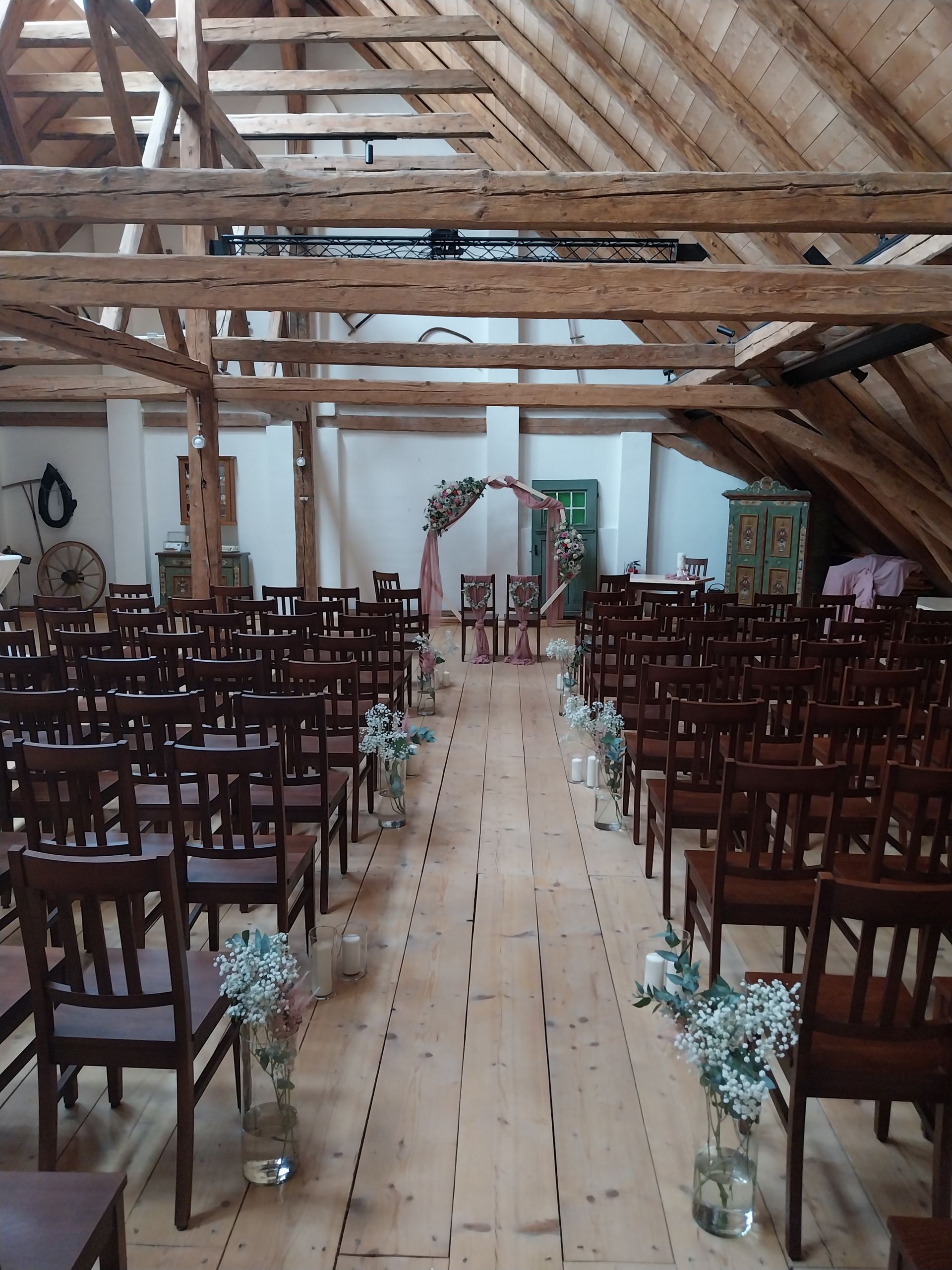 Schon vor Jahren reifte in uns die Erkenntnis, es ist Zeit etwas zu tun. Seit Jahrzehnten stand der historische Pschorrstadl im Pschorrhof nun schon ungenutzt leer, verfiel zusehend und war so nicht gerade eine optische Bereicherung für Adelshofen. Wir wollten unseren Teil dazu beitragen, diesen Zustand zu beenden und dem Pschorrstadl wieder zu altem Glanz zu verhelfen. So entschieden wir uns als Familie, das Gebäude 2017 von der Gemeinde Adelshofen zu erwerben und bereits im gleichen Jahr starteten die Umbau - und Renovierungsarbeiten, die sich über 4 Jahre erstreckten. Sowohl statische wie auch denkmalschutz- und brandschutzrelevante Aspekte mussten berücksichtigt werden, was nicht immer ganz einfach war. Der Aufwand hat sich aber gelohnt! Durch sehr viel Eigenleistung und die Mithilfe hauptsächlich regionaler Handwerksbetriebe aus Adelshofen und Umgebung erstrahlt der Pschorrstadl jetzt seit 2021 wieder in neuem Glanz.